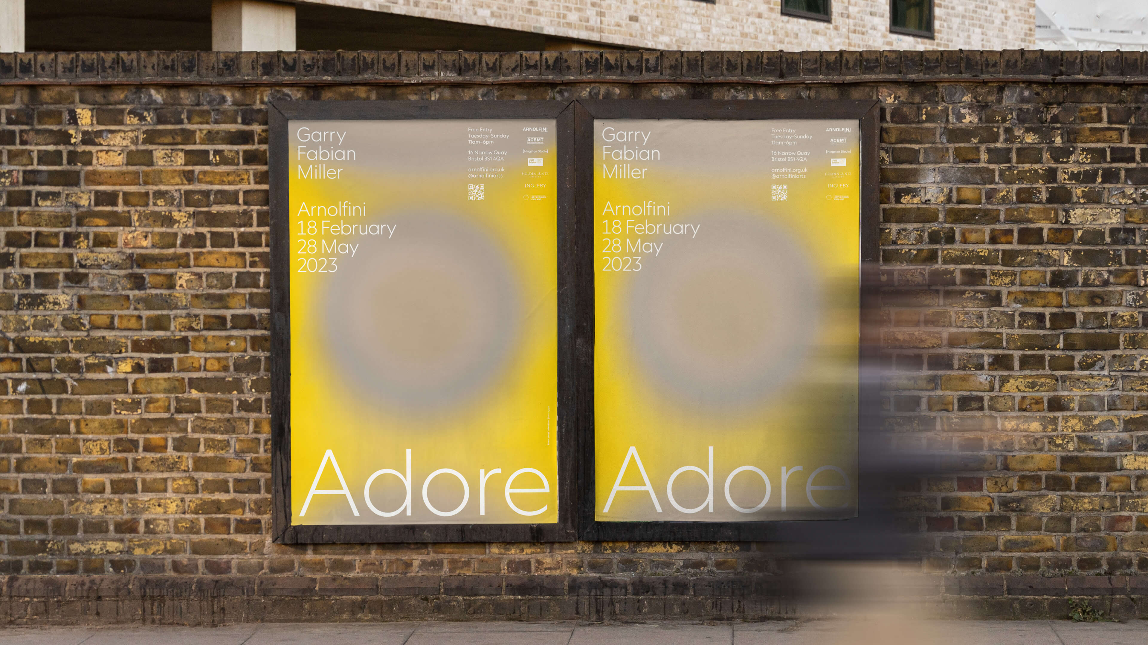 The campaign served as an extension of this idea – creating the means of bringing a smaller series of works into the streets of the city. The images themselves are powerful compositions of colour, symmetry and form, so the typographic system needed to feel harmonious, whilst establishing structure and rigour. Scale was also an important consideration; the large application of the word ADORE evokes a feeling of generosity, again, playing back the notion that the show is a gift.